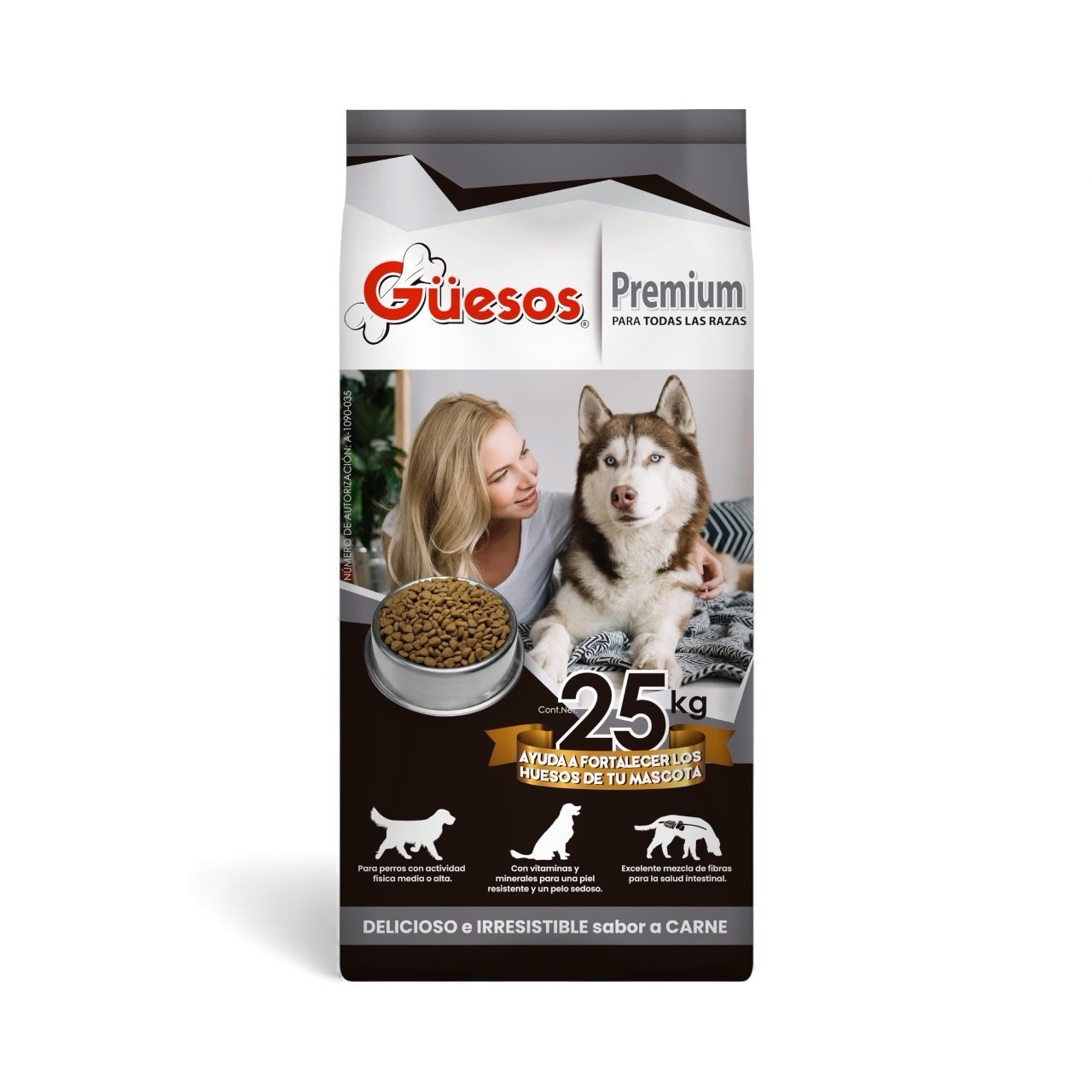 - Fórmula Premium Guesos, ideal para perros adultos.