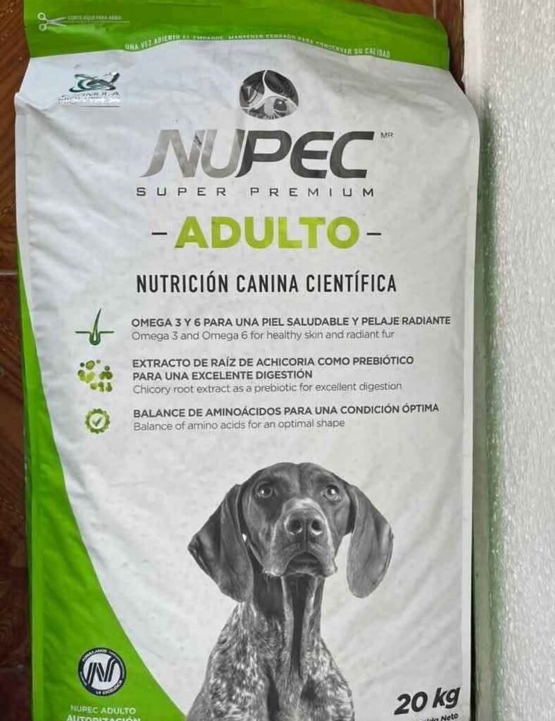 El alimento Nupec Adulto 20 kg está diseñado especialmente para perros de raza mediana y grande, ofreciendo una dieta balanceada que provee todos los nutrientes esenciales para mantener su salud, energía y vitalidad.