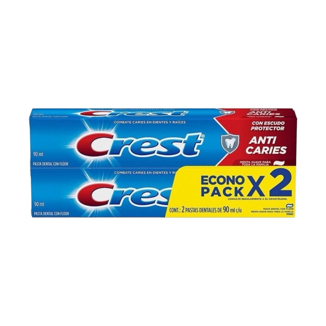 Pasta Dental Anticaries con Flúor Crest Escudo Anti-azúcar 2 pzas de 90 ml c/u — Precio: $42